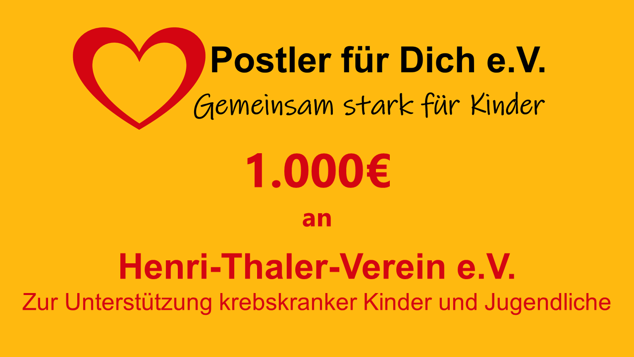 Im Rahmen eines Benefiz-Events der Deutsche Post AG in Schwerte hatten wir eine tolle Überraschung für den Henri-Thaler-Verein, der sich für krebskranke Kinder und Jugendliche engagiert.
