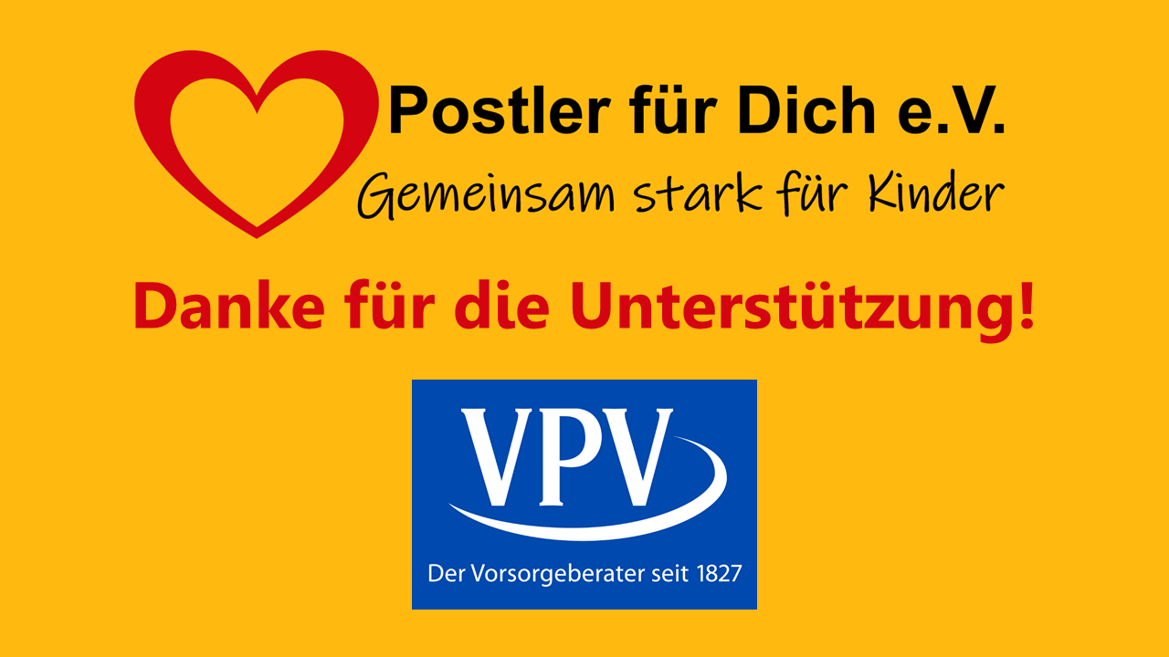 aufmerksam und entschloss sich kurzer Hand unsere Spende zu verdoppeln. Darüber hinaus wird man bei der Vereinigte Postversicherung (VPV) unsere Aktivitäten im Auge behalten und möchte unseren Verein auch künftig bei weiteren Aktionen und Projekten unter die Arme greifen.